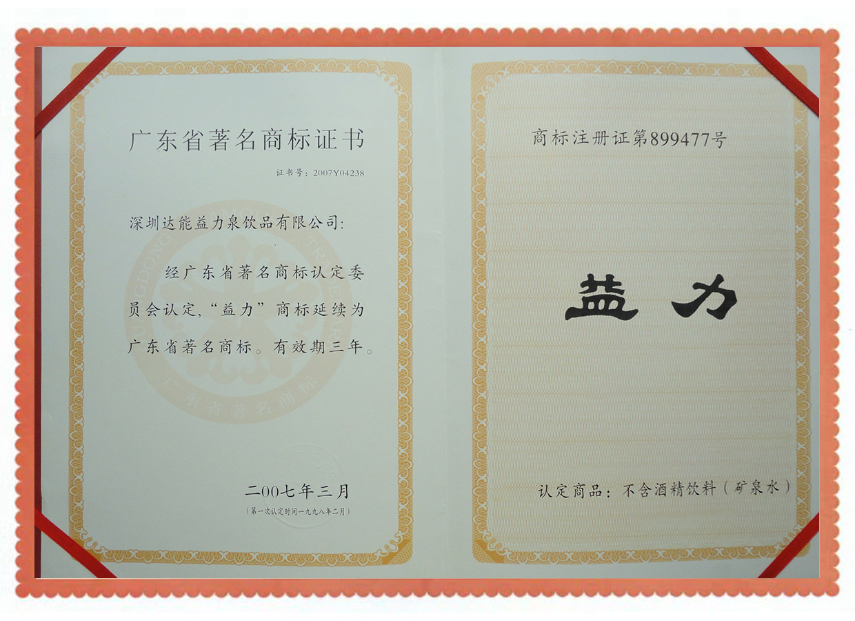 广东省著名商标证书
