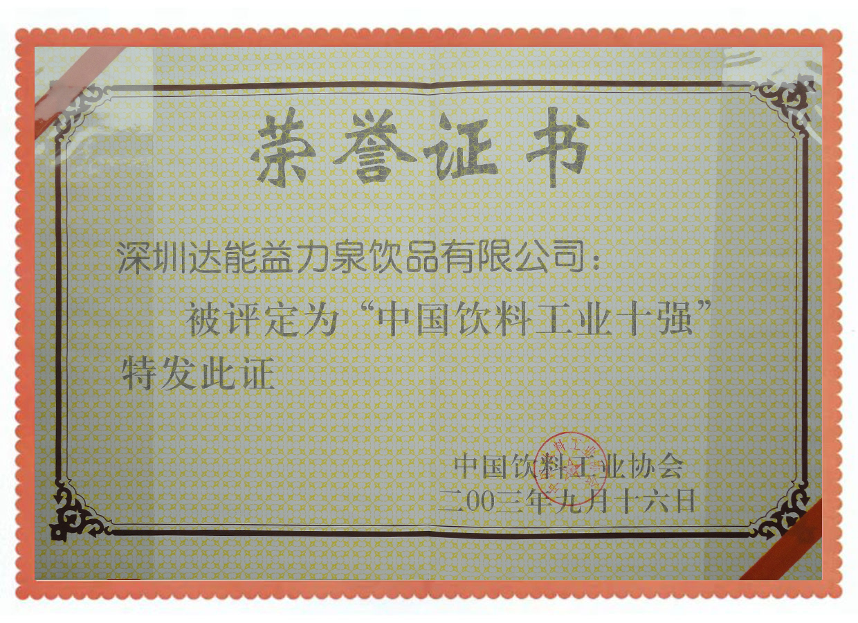 中国饮料工业天然矿泉水十强