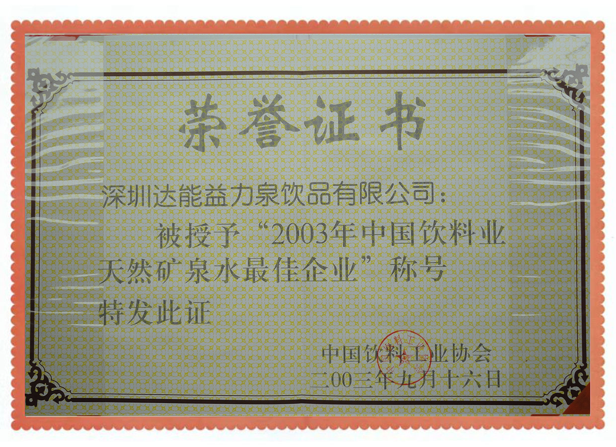 中国饮料业天然矿泉水最佳企业
